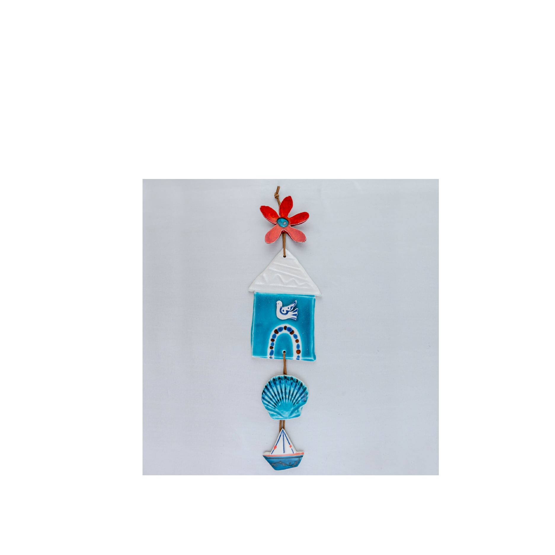 Handmade ceramic garland house, coloured with a combination of turquoise, white, and orange fine glazes.Perfect choice for wall decoration.